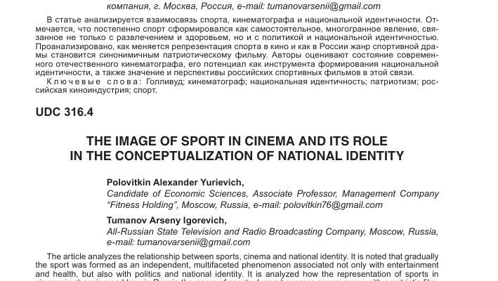 | Спорт в кино | Образ спортсмена | Кинематограф |